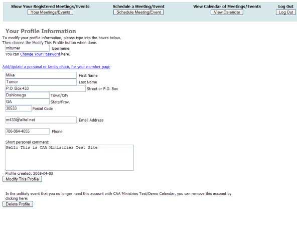 In the middle of the page, you see your "profile" which is the information you entered when you registered. You may edit/change this information, at any time.