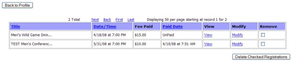 Or if you have decided NOT to attend the event, you may use the Remove checkboxes to delete the event from your registered list.